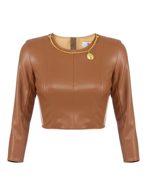 charm-detail T-shirt Highlights - Black - Round neck - Long sleeves - Cut-out detail - Chain-link detailing - Charm detail - Rear zip fastening Made in Italy Composition Body: Viscose 95%, Lycra 5% Coating: Polyurethane 100% Lining: Polyamide 77%, Lycra 23%