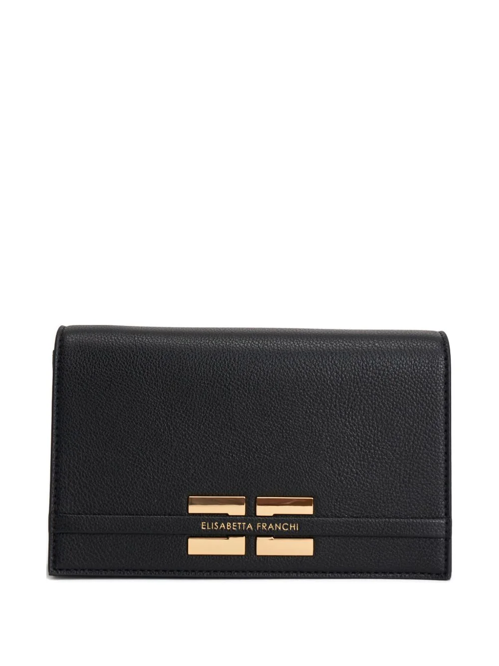 plaque-detail clutch bag Highlights - Black - Gold-tone hardware - Chain strap - Flap top - Rectangular body Imported Composition Outer: Fabric 100%