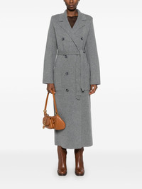 emblem-embroidered fine-knit coat Highlights - Light grey - Wool-cashmere blend - Fine knit - Emblem embroidery - Double-breasted button fastening - Notched lapels - Long sleeves - Belted waist - Detachable belt - Two front patch pockets - Unlined - Straight hem - Mid-length Made in Italy Composition Virgin Wool 90%, Cashmere 10% SIZE & FIT Model measurements Height 5 ft 10 in(1.78 m) Bust/Chest 31.49 in(80 cm) Hips 37 in(94 cm) Waist 23.62 in(60 cm) FittingInformation Designed to be unstructured, offering a loose fit throughout The internal shoulder pads offer a structured shape Made from a midweight non-stretch fabric Washing instructions Dry Clean Only