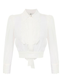embroidered-design shirt Highlights - White - Front button fastening - Rear tie fastening - Straight-point collar - Long sleeves Made in Italy Composition Viscose 100% Washing instructions Read Manufacturer Guidelines
