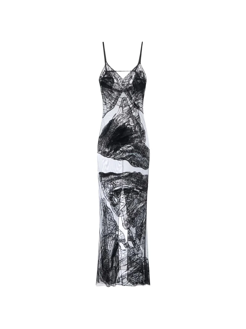 embroidered maxi dress Highlights - Black - Tulle - Thin straps - Hood - Embroidery - Crystal embellishment Imported Composition Polyamide 100% Washing instructions Read Manufacturer Guidelines