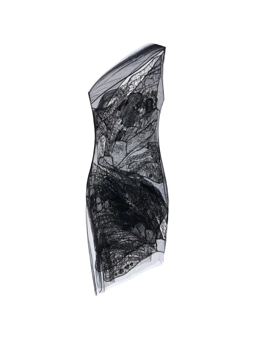 embroidered mini dress Highlights - Black - Embroidery front back - One-shoulder design - Asymmetric cut - Lace embellishment - Crystal embellishment Imported Composition Polyamide 100% Washing instructions Read Manufacturer Guidelines