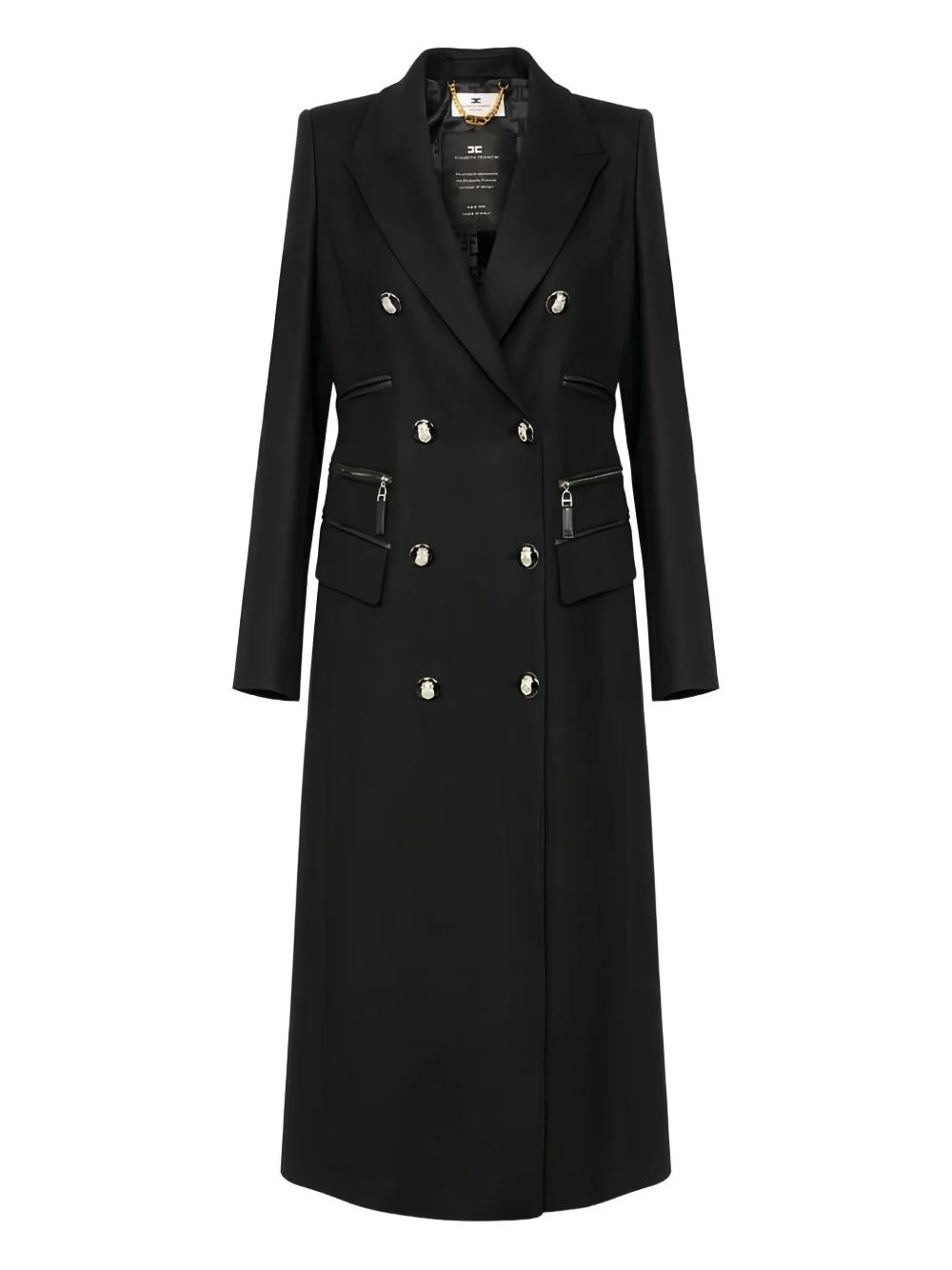 enamelled button double-breasted coat Highlights - Black - Crepe fabric - Peak lapels - Enamelled buttons - Zip detail - Flap pockets Made in Italy Composition Viscose 63%, Polyamide 35%, Spandex/Elastane 2% Washing instructions Read Manufacturer Guidelines