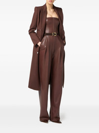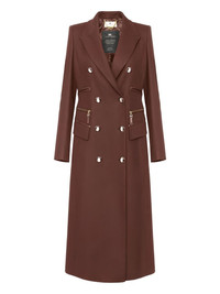 enamelled-button double-breasted coat Highlights - Coffee brown - Crepe texture - Peak lapels - Flap pockets - Zip pockets Made in Italy Composition Viscose 63%, Polyamide 35%, Elastane 2% Washing instructions Read Manufacturer Guidelines