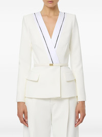 flap-pocket jacket Highlights - Ivory - Belt - Gold-tone hardware - Padded shoulders Made in Italy Composition Polyester 95%, Spandex/Elastane 5% Washing instructions Read Manufacturer Guidelines