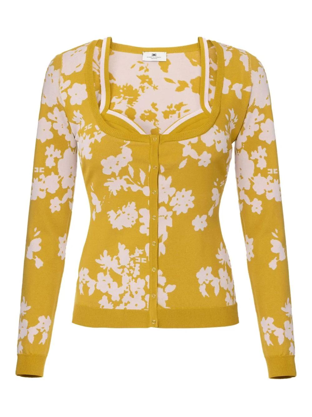 floral-jacquard cardigan Highlights - Yellow - Floral jacquard - Snap-button front - Long sleeves - Matching bra Made in Italy Composition Viscose 83%, Elastane 17% Washing instructions Read Manufacturer Guidelines