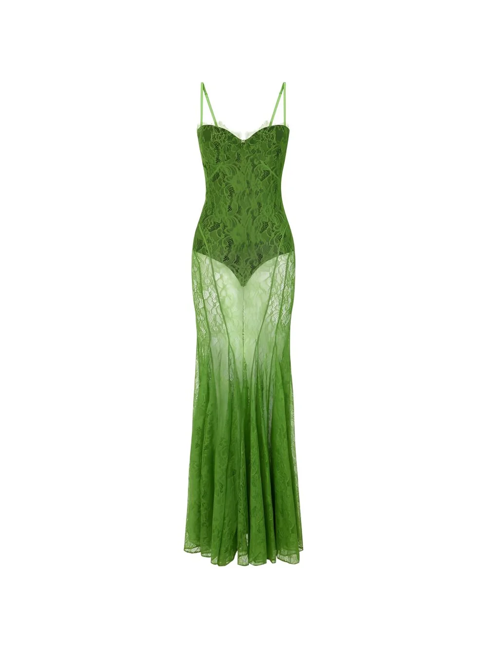 floral-lace maxi dress Highlights - Green - Lace - Thin straps - Mermaid line - Scalloped trimming Made in Italy Composition Polyamide 100% Washing instructions Read Manufacturer Guidelines