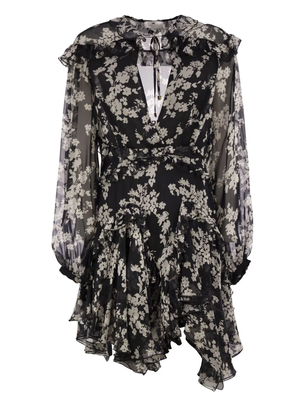 floral mini dress Highlights - Black - Floral print - Lace detail - Ruffle detail - Long sleeves Made in Italy Composition Outer: Silk 100% Lining: Polyester 100% Washing instructions Read Manufacturer Guidelines
