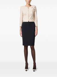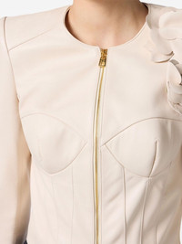 flower appliques leather jacket Highlights - Light beige - Front two-way zip fastening - Three-quarter length sleeves - Split cuffs Imported Composition Leather 100% Washing instructions Specialist Cleaning