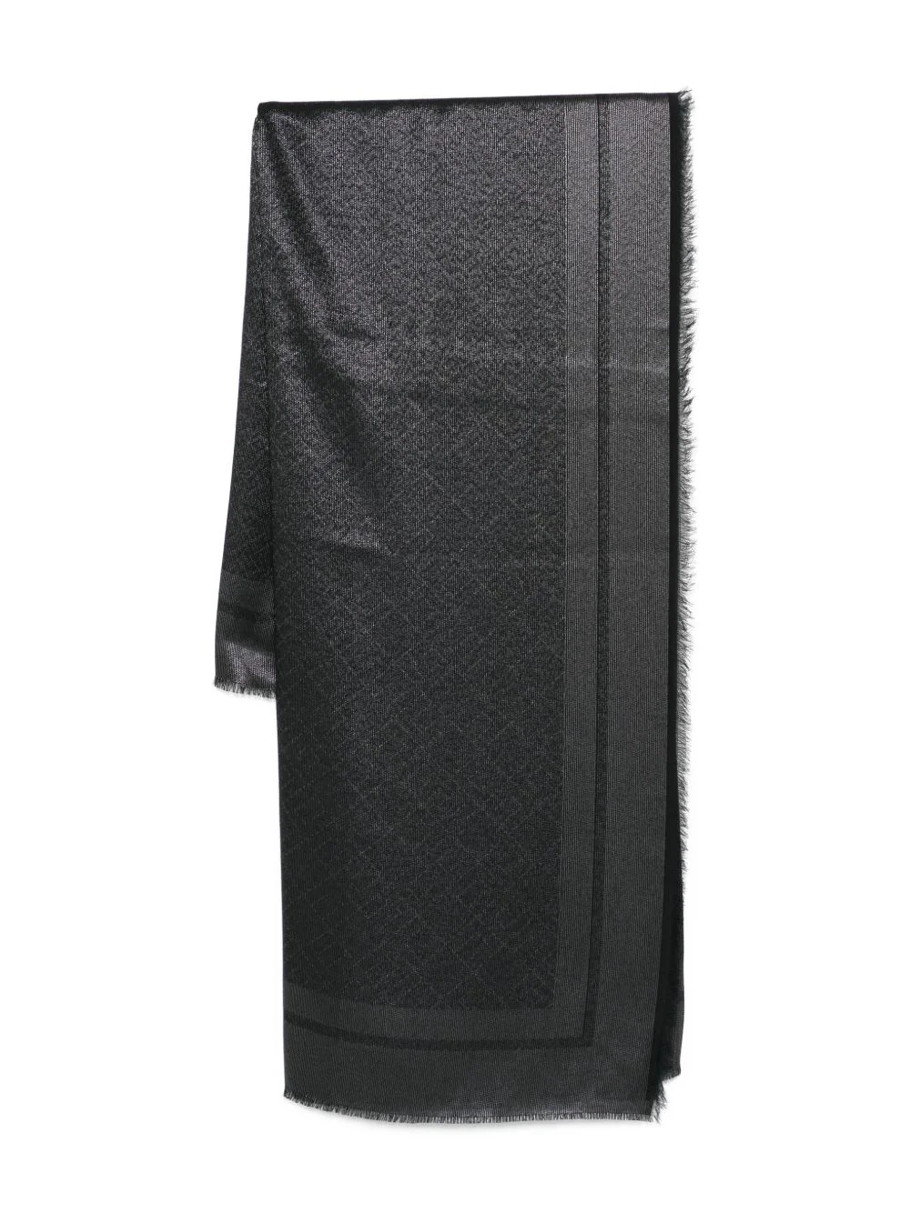 frayed-edge scarf Highlights - Black - Metallic effect - Stripe detail - Frayed edges Made in Italy Composition Viscose 69%, Modal 26%, Polyamide 5% SIZE & FIT Measurement LENGTH 55.11 in(140 cm) WIDTH 55.11 in(140 cm) Washing instructions Hand Wash