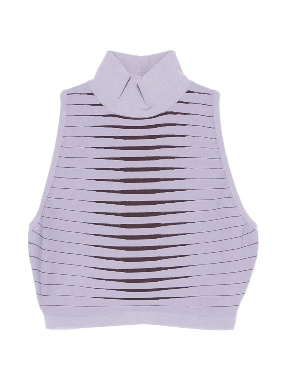 high-neck tank top Highlights - Lilac purple - Ribbed knit - Sleeveless Imported Composition Viscose 64%, Polyamide 23%, Polyester 13% Washing instructions Hand Wash