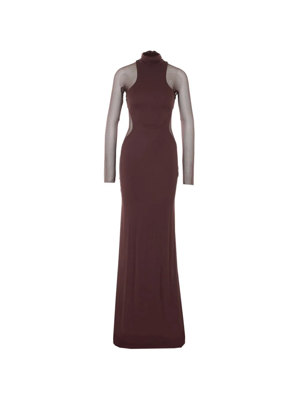 high-neck transparent-sleeves dress Highlights - Brown - High neck - Transparent sleeves - Elasticised fit Made in Italy Composition Viscose 96%, Elastane 4%