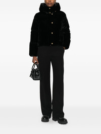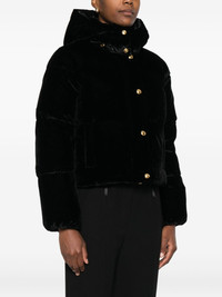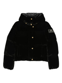 hooded puffer jacket Highlights - Black - Velvet texture - Quilted design - Gold-tone button fastening - Hooded neckline - Logo patch Imported Composition Fabric 100% SIZE & FIT Model measurements Height 5 ft 11 in(1.8 m) Bust/Chest 31.49 in(80 cm) Hips 36.61 in(93 cm) Waist 24.4 in(62 cm) Washing instructions Read Manufacturer Guidelines