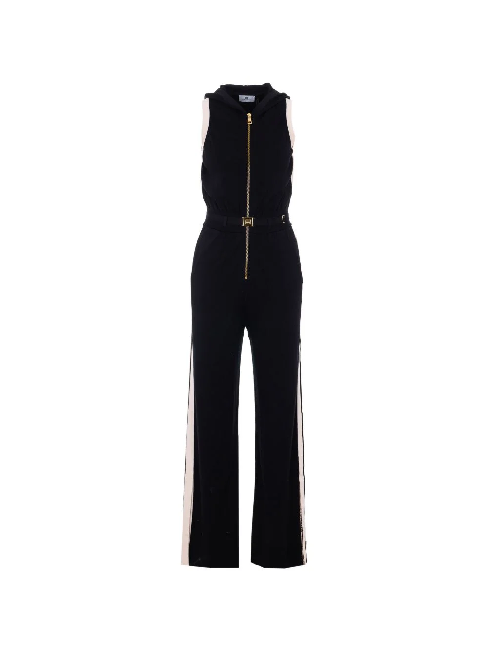 hooded zip jumpsuit Highlights - Black - Hood - Front zip closure - Long sleeves - Belted - Side stripe Made in Italy Composition Viscose 82%, Polyamide 18% Washing instructions Read Manufacturer Guidelines