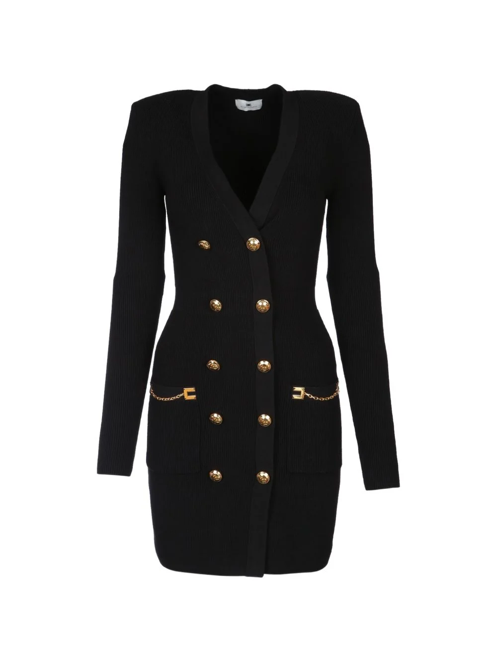 jewel-button chain-detail knitted mini dress Highlights - Black - Ribbed knit - Gold-tone buttons - Chain detail - V-neck - Long sleeves Imported Composition Viscose 68%, Polyester 27%, Polyamide 5% Washing instructions Read Manufacturer Guidelines