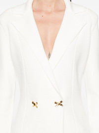jewelled bows knit blazer Highlights - White - Double-breasted press-stud fastening - Long sleeves - Notched lapels - Ribbed detailing Imported Composition Viscose 68%, Polyester 27%, Polyamide 5% SIZE & FIT Model measurements Height 5 ft 10 in(1.78 m) Bust/Chest 33.46 in(85 cm) Hips 36.22 in(92 cm) Waist 23.22 in(59 cm) FittingInformation Designed for a close fit throughout The internal shoulder pads offer a structured shape Made with a midweight knit, this piece offers some stretch This piece fits small – take one size up