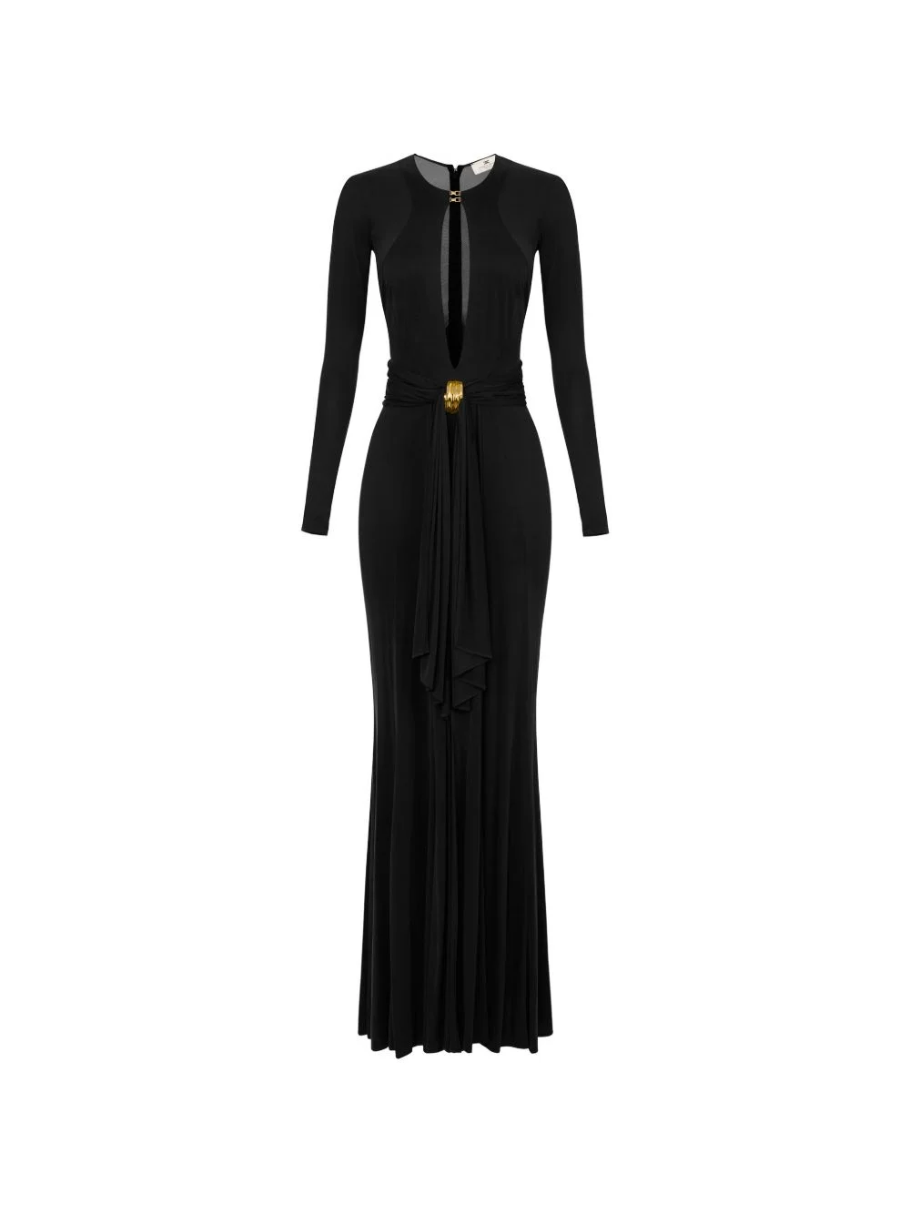 keyhole draping maxi dress Highlights - Black - Cupro - Keyhole neckline - Slim fit - Draping - Jewelled detail Made in Italy Composition Cupro 92%, Elastane 8% Washing instructions Read Manufacturer Guidelines