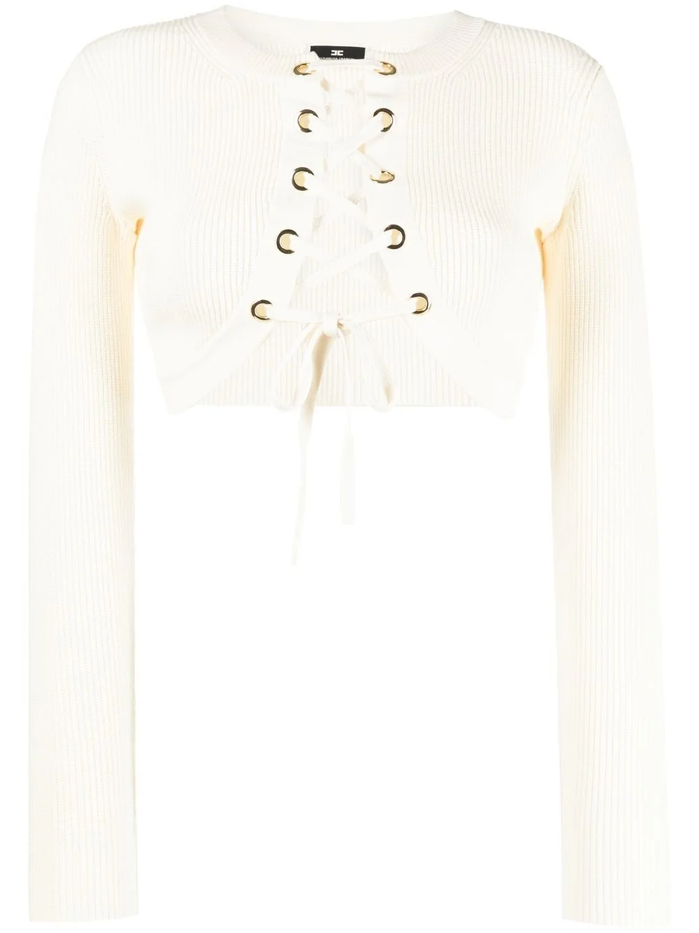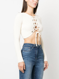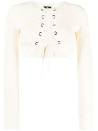 lace-up cropped cardigan light beige ribbed knit metal eyelet detailing crew neck front lace-up fastening long sleeves straight hem cropped Imported Composition Viscose 70%, Polyester 30% SIZE & FIT Model measurements Height 5 ft 10 in(1.77 m) Bust/Chest 35.03 in(89 cm) Hips 35.03 in(89 cm) Waist 23.62 in(60 cm) FittingInformation This piece fits true to size. We recommend you get your regular size Cut for a slim fit Made with a mid-weight fabric Washing instructions Dry Clean Only