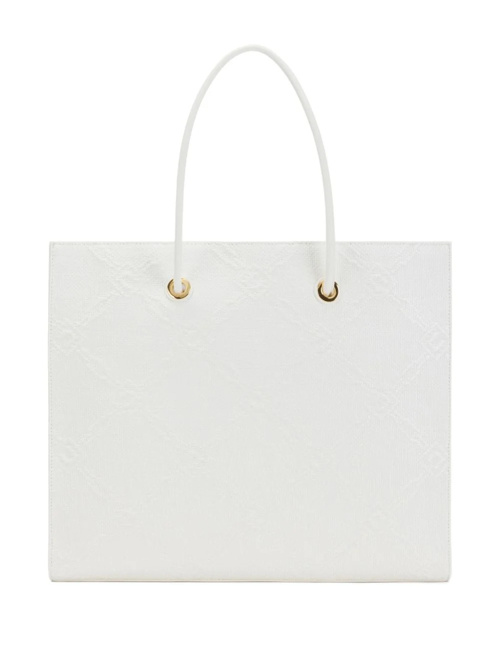 large leather tote bag Highlights - White - Textured finish - Logo patch - Gold-tone eyelets - Dual top handles - Removable pouch Imported Composition Outer: Polyamide 100% SIZE & FIT Measurement DEPTH 5.11 in(13 cm) HEIGHT 12.99 in(33 cm) WIDTH 15.74 in(40 cm)