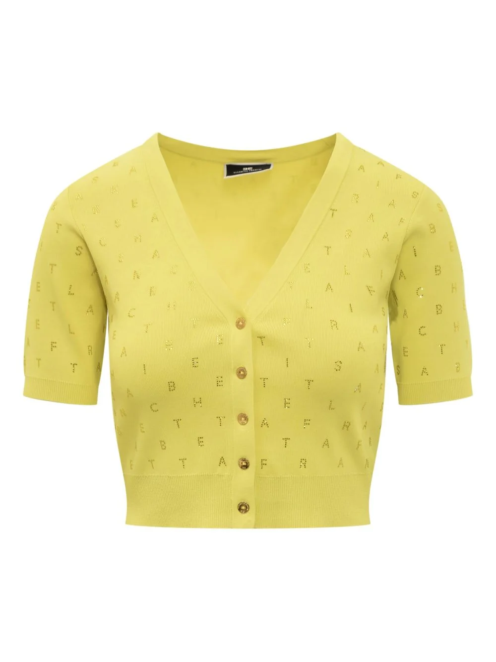 letters-print cardigan Highlights - Banana yellow - Front button fastening - V-neck - Short sleeves - Straight hem Imported Composition Viscose 63%, Polyamide 37% SIZE & FIT FittingInformation Designed for a slim fit that sits just away from the body offering a close yet comfortable fit Made with a midweight knit, this piece offers some stretch Washing instructions Read Manufacturer Guidelines