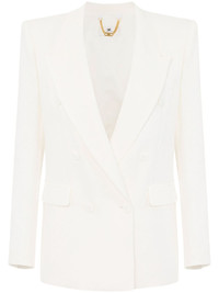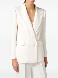 double-breasted blazer Highlights - White - Double-breasted button fastening - Two side flap pockets - Buttoned-cuff sleeves - Central rear vent Made in Italy Composition Viscose 50%, Organic Linen 50% Washing instructions Read Manufacturer Guidelines