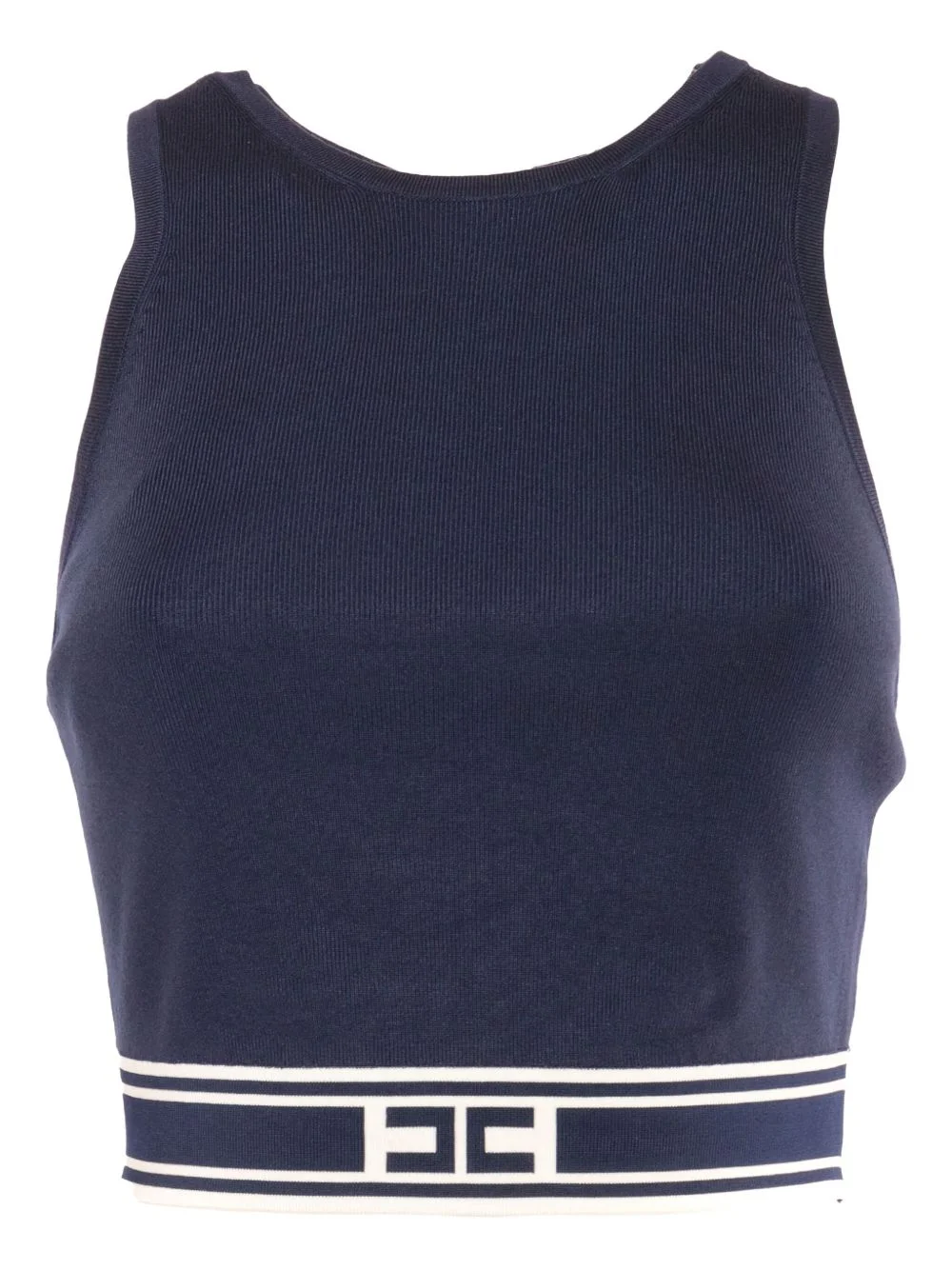 logo-band sleeveless top Highlights - Blue - Ribbed texture - Sleeveless - Round neck - Logo band detail Imported Composition Viscose 82%, Polyamide 18% SIZE & FIT FittingInformation Designed for a close fit throughout Cropped in length Made with a midweight knit, this piece offers some stretch Washing instructions Read Manufacturer Guidelines