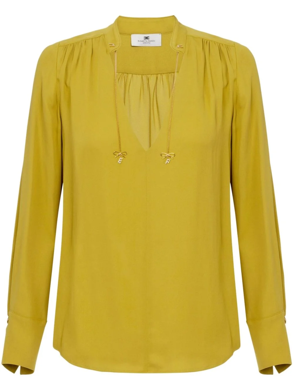 logo-charm georgette blouse Highlights - Yellow - V-neck - Long sleeves - Buttoned cuffs Made in Italy Composition Viscose 100% SIZE & FIT FittingInformation Designed for a relaxed fit, this piece allows for comfort and movement when worn Made from a midweight non-stretch fabric Washing instructions Read Manufacturer Guidelines