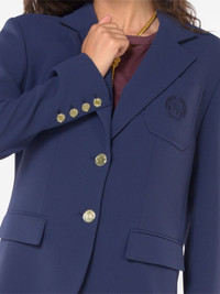 logo-embroidered blazer Highlights - Navy blue - Embroidered logo at the chest - Button fastening - Notched lapels - Flap pockets - Buttoned cuffs Imported Composition Fabric 100% Washing instructions Read Manufacturer Guidelines
