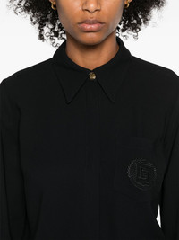 logo-embroidered crepe shirt Highlights - Black - Crepe texture - Pointed collar - Long sleeves - Buttoned cuffs - Chest patch pocket - Embroidered logo at the chest - Knife-pleat design - Straight hem - Concealed front button fastening Made in Italy Composition Viscose 100% SIZE & FIT Model measurements Height 5 ft 11 in(1.8 m) Bust/Chest 31.49 in(80 cm) Hips 35.82 in(91 cm) Waist 24.8 in(63 cm) FittingInformation Designed to be unstructured, offering a loose fit throughout Made from a lightweight non-stretch fabric This piece fits true to size – take your usual size Washing instructions Dry Clean Only