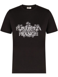 logo-embroidered T-shirt Highlights - Black - Floral embroidery to the front - Crew neck - Short sleeves - Straight hem Made in Italy Composition Viscose 96%, Elastane 4% SIZE & FIT FittingInformation Designed to be unstructured, offering a loose fit throughout Made from a midweight non-stretch fabric, this piece offers minimal elasticity when worn