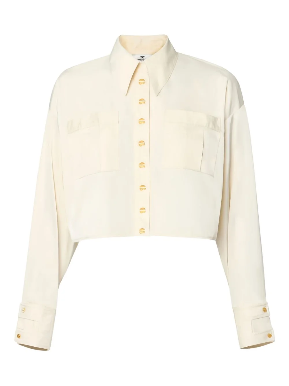 logo-label shirt Highlights - Milk - Gold-tone buttons - Classic collar - Patch pockets Made in Italy Composition Polyester 100% Washing instructions Read Manufacturer Guidelines
