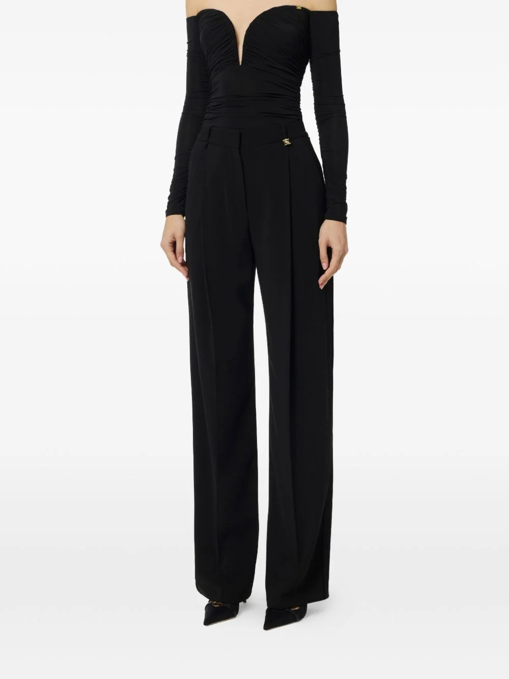 logo-plaque trousers Highlights - Black - Logo plaque - Front pleats - Straight leg - Concealed fastening - Belt loops Imported Composition Polyester 98%, Spandex/Elastane 2% Washing instructions Read Manufacturer Guidelines