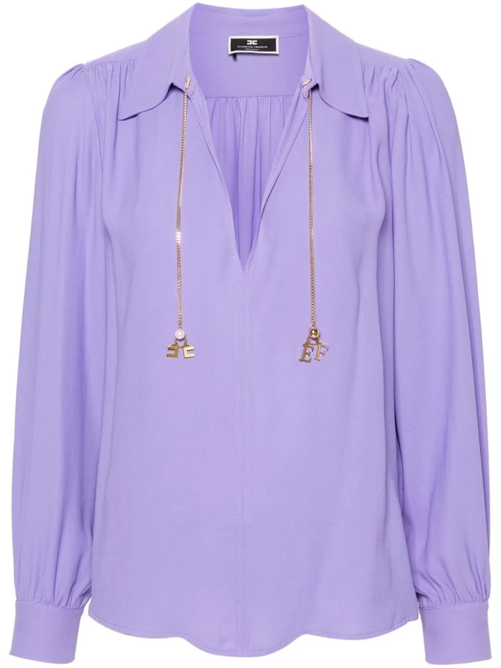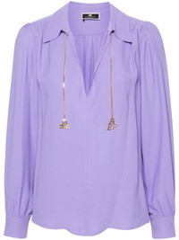 logo-print georgette blouse Highlights - Violet purple - Georgette crepe - Pointed flat collar with chain-link detailing - V-neck - Long sleeves with buttoned cuffs - Unlined - Curved hem Made in Italy Composition Viscose 100% SIZE & FIT Model measurements Height 5 ft 11 in(1.8 m) Bust/Chest 31.49 in(80 cm) Hips 36.22 in(92 cm) Waist 25.59 in(65 cm) FittingInformation Designed to be unstructured, offering a loose fit throughout Made from a midweight non-stretch fabric This piece fits true to size – take your usual size Washing instructions Dry Clean Only