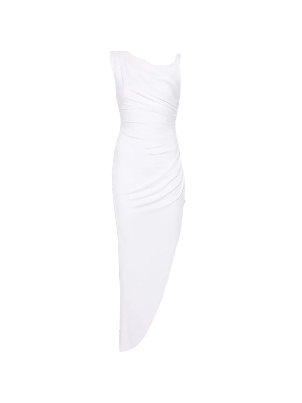 asymmetric draped midi dress Highlights - White - Draped detailing - Asymmetric design - Sleeveless - Concealed side zip fastening Made in Italy Composition Outer: Viscose 95%, Elastane 5% Lining: Polyamide 77%, Elastane 23% Washing instructions Hand Wash