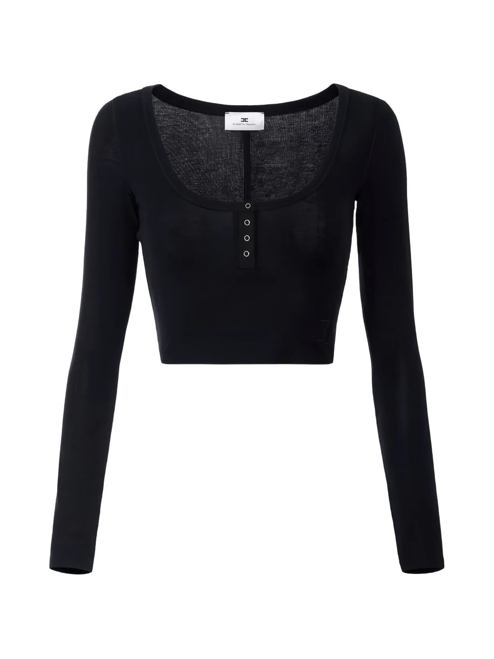 long-sleeve button top Highlights - Black - Long sleeves - Front button fastening - Embroidered logo Imported Composition TENCEL™ 76%, Wool 20%, Spandex/Elastane 4% Washing instructions Read Manufacturer Guidelines