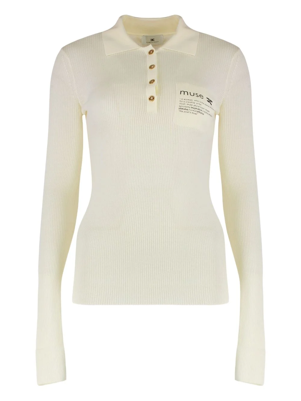 long-sleeve polo shirt Highlights - Ivory white - Ribbed knit - Button fastening - Long sleeves Made in Italy Composition Wool 99%, Elastane 1% Washing instructions Read Manufacturer Guidelines