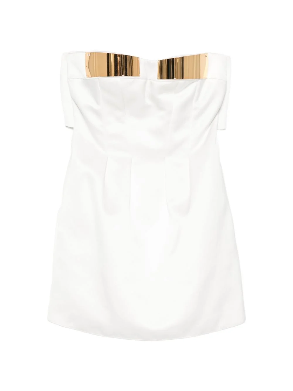 metallic-detail strapless mini dress Highlights - Off-white - Metallic detailing - Strapless - Mini length - Pleated detail - Concealed zip fastening Made in Italy Composition Outer: Polyester 100% Polyamide 90%, Elastane 10% Washing instructions Dry Clean Only
