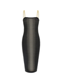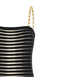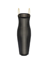 striped-pattern chain-strap midi dress Highlights - White and black - Striped pattern - Removable chain straps - Sleeveless - Bandeau neckline Imported Composition Viscose 83%, Polyester 17% Washing instructions Read Manufacturer Guidelines