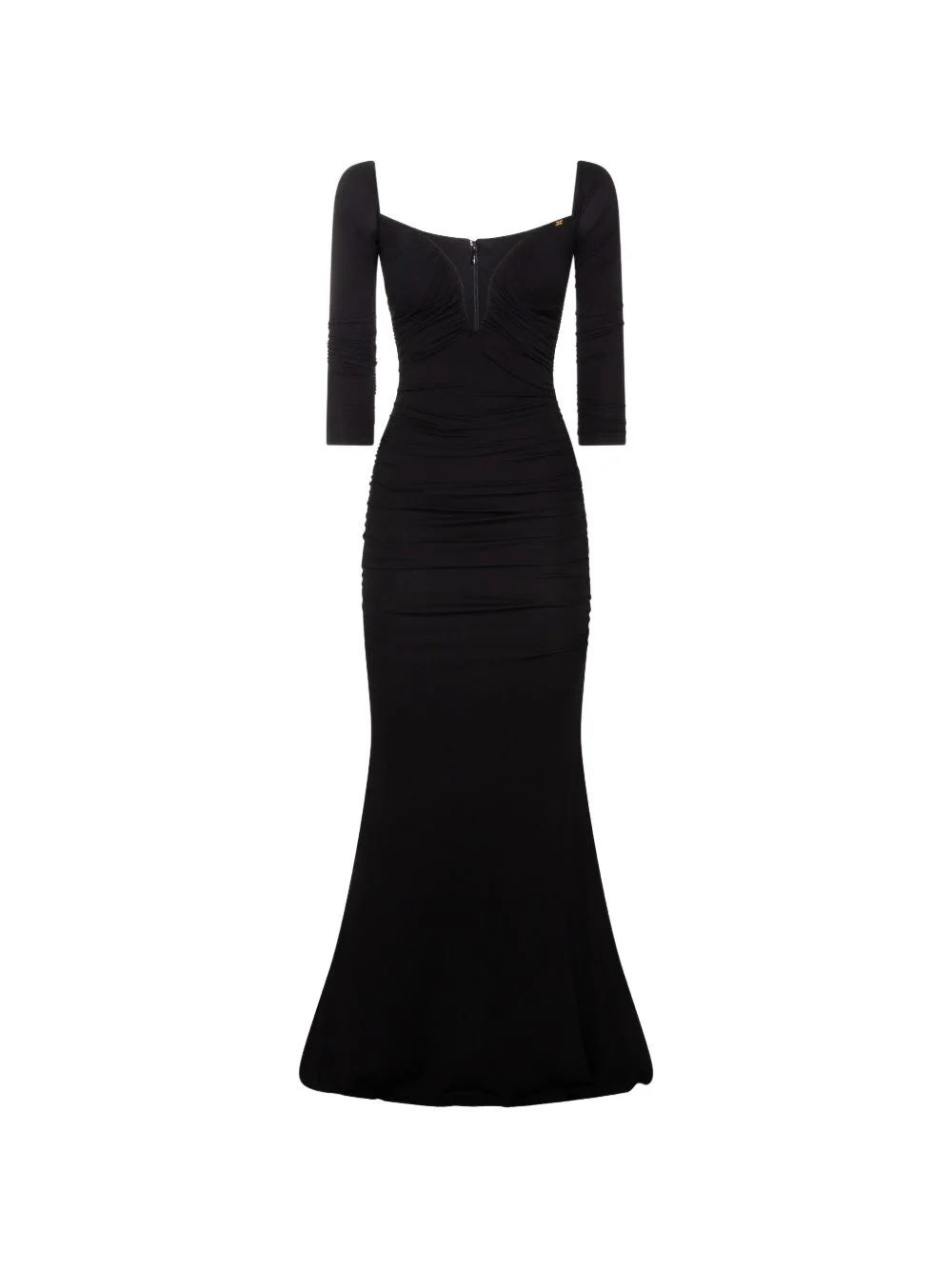 Off-shoulder black dress Highlights - Black - Logo detail - Golden metal - Sweetheart neck Made in Italy Composition Viscose 95%, Lycra 5% Washing instructions Read Manufacturer Guidelines