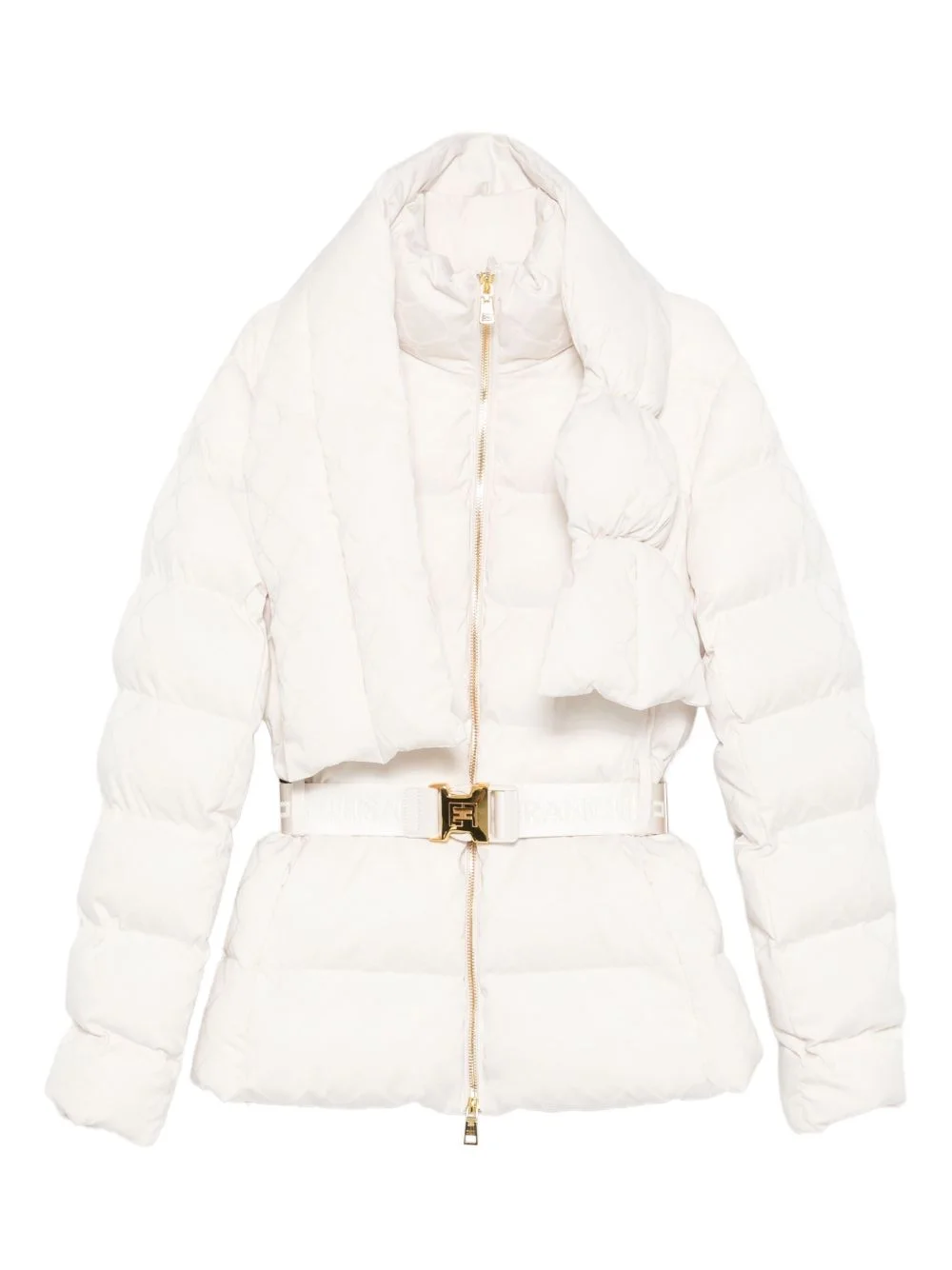 belted jacket Highlights - White - Buckle belt - Removable padded scarf - Zip fastening Imported Composition Polyester 100% SIZE & FIT Model measurements Height 5 ft 11 in(1.8 m) Bust/Chest 31.49 in(80 cm) Hips 36.61 in(93 cm) Waist 24.4 in(62 cm) Washing instructions Read Manufacturer Guidelines