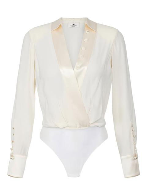 panelled button-cuff bodysuit Highlights - Black - Satin panel - Button cuffs - V-neck - Long sleeves - Mesh base - Just a reminder that this piece must be tried on over your own garments. Made in Italy Composition Viscose 100% SIZE & FIT Model measurements Height 5 ft 10 in(1.78 m) Bust/Chest 31.49 in(80 cm) Hips 37 in(94 cm) Waist 23.62 in(60 cm) Washing instructions Dry Clean Only
