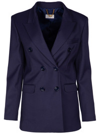 peak-lapels double-breasted blazer Highlights - Navy blue - Peak lapels - Double-breasted button fastening - Long sleeves - Two front flap pockets - Central rear vent - Straight hem Made in Italy Composition Polyester 54%, Virgin Wool 44%, Elastane 2% Washing instructions Read Manufacturer Guidelines