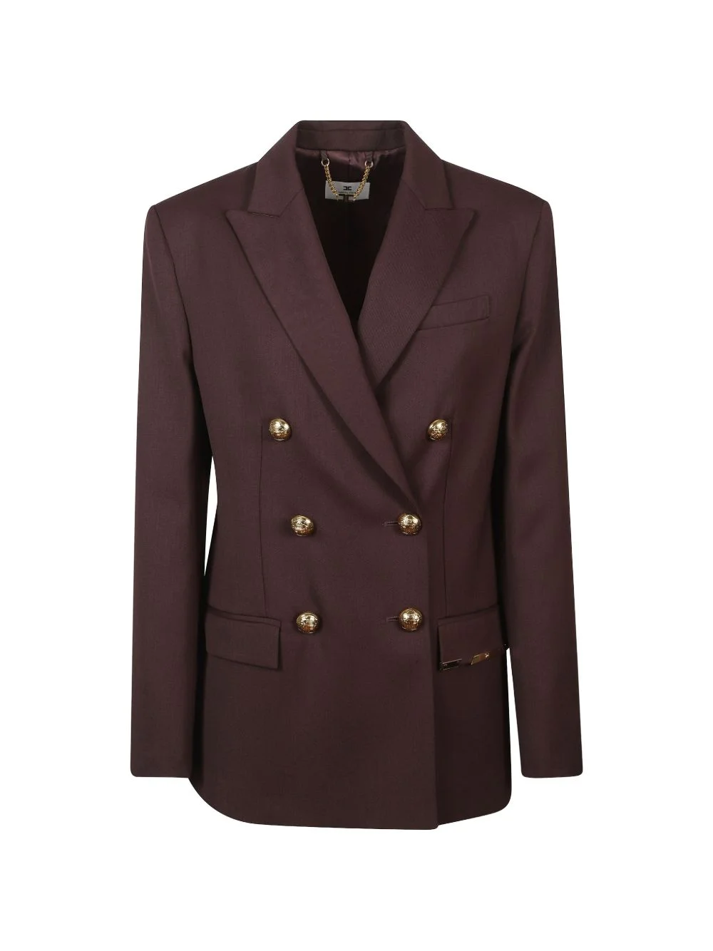 peaked-lapel double-breasted blazer Highlights - Brown - Gold-tone hardware - Peaked lapels - Double-breasted button fastening - Front flap pockets - Buttoned cuffs Made in Italy Composition Fabric 100% Washing instructions Read Manufacturer Guidelines