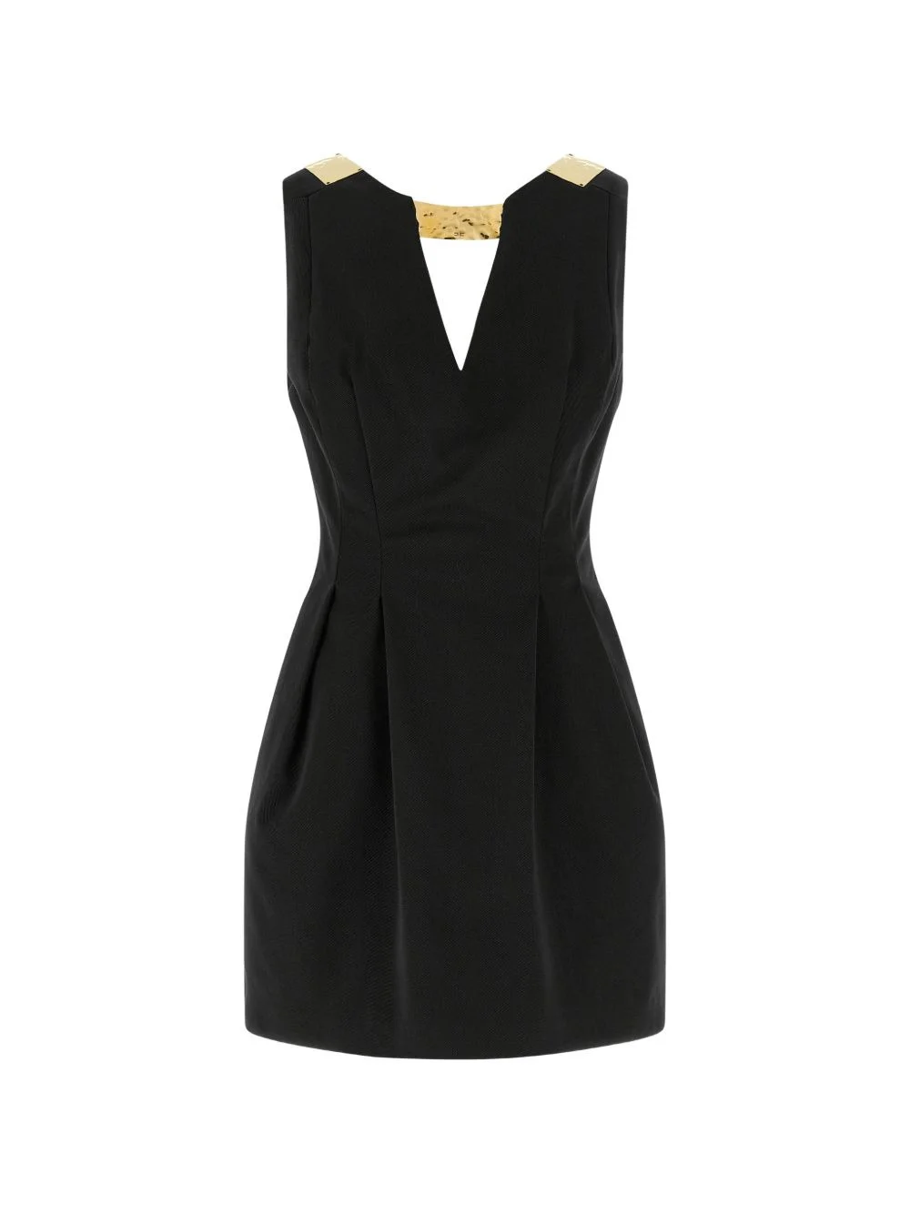 plaque V-neck mini dress Highlights - Black - Gold-tone plaques - Pleats - Wide v-neck - Sleeveless - Back zip closure Made in Italy Composition Outer: Cotton 98%, Elastane 2% Lining: Satin 100% Washing instructions Read Manufacturer Guidelines