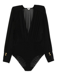 pleated-panel button-cuff bodysuit Highlights - Black - V-neck - Long sleeves - Pleated front panel - Button cuffs - Sheer yoke - Mesh base - Just a reminder that this piece must be tried on over your own garments. Imported Composition Polyester 100% SIZE & FIT Model measurements Height 5 ft 9 in(1.76 m) Bust/Chest 31.49 in(80 cm) Hips 35.03 in(89 cm) Waist 24.8 in(63 cm) Washing instructions Read Manufacturer Guidelines