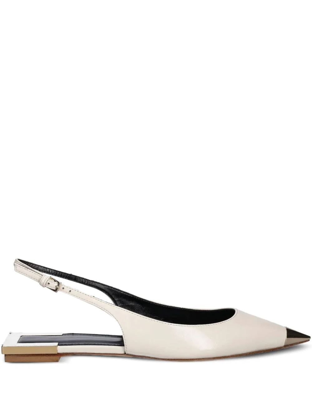 pointed-toe slingback ballet flats Highlights - Cream - Slingback design - Pointed toe - Gold-tone toecap - Flat sole - Buckle fastening Imported Composition Lining: Leather 100% Sole: Leather 100% Outer: Leather 100%