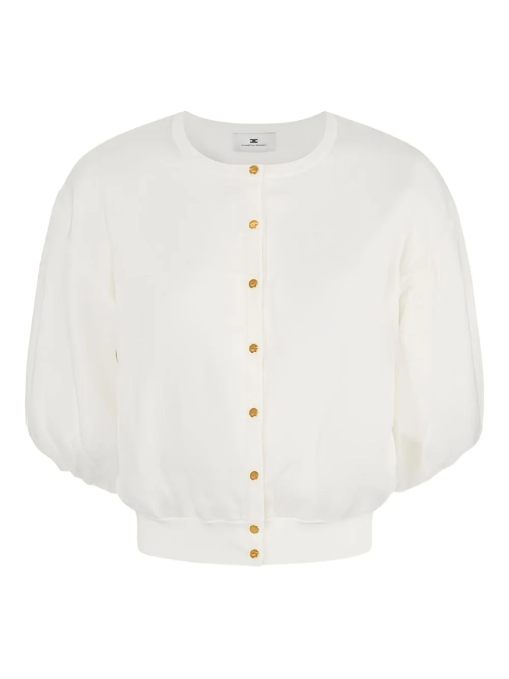 puffed-sleeve cardigan Highlights - Ivory - Logo buttons - Round neck - Puffed sleeves - Ribbed hem Imported Composition Cotton 90%, Polyamide 10% Washing instructions Read Manufacturer Guidelines