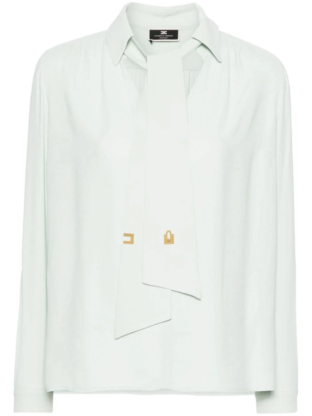 pussy-bow V-neck blouse Highlights - Mint green - Crepe texture - Spread collar with pussy-bow fastening - Gold-tone logo plaque - V-neck - Long sleeves with buttoned cuffs - Straight hem Made in Italy Composition Viscose 100% SIZE & FIT Model measurements Height 5 ft 10 in(1.77 m) Bust/Chest 33.85 in(86 cm) Hips 37 in(94 cm) Waist 26.37 in(67 cm) FittingInformation Designed to be unstructured, offering a loose fit throughout Made from a lightweight non-stretch fabric This piece fits true to size – take your usual size Washing instructions Dry Clean Only