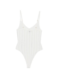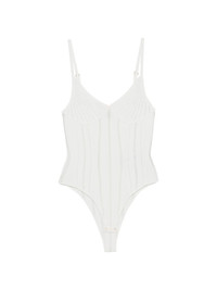 ribbed bodysuit Highlights - Ivory - Ribbed texture - Tonal stitching - Thin shoulder straps - V-neck - Just a reminder that this piece must be tried on over your own garments. Imported Composition Viscose 78%, Polyamide 22% Washing instructions Hand Wash