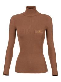 ribbed breast-pocket sweater Highlights - Brown - Ribbed knit - Breast pocket - Logo detail - Turtleneck - Buttoned sleeves Imported Composition Lyocell 64%, Polyamide 20%, Silk 16% Washing instructions Read Manufacturer Guidelines